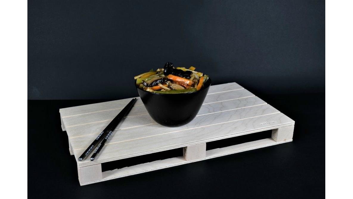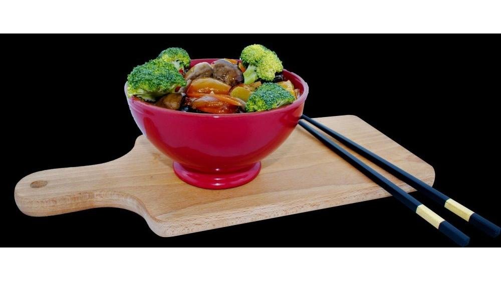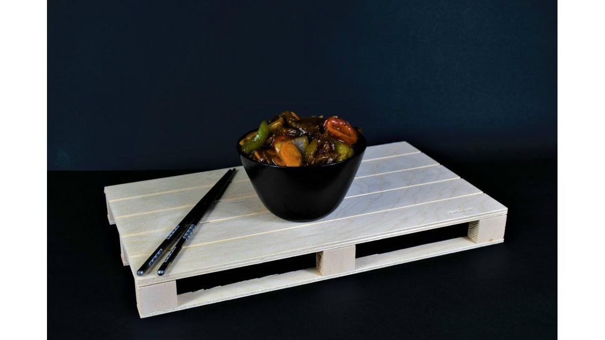 Carne de vita, urechi de lemn, ciuperci proaspete, ardei gras, ceapa, legume chinezesti, morcovi, sare, sos stridii, condimente chinezesti 300 g