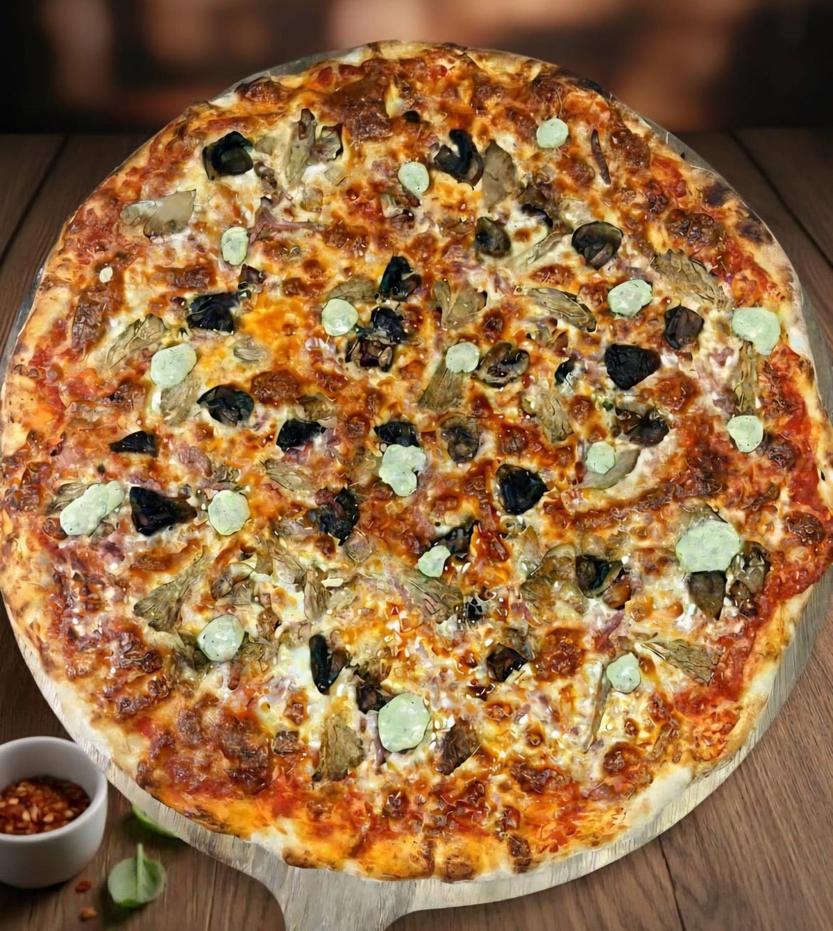 Blat, sos de pizza, mozzarella, pastă de ardei iute copt, miere hot, ardei iute - 1.5kg