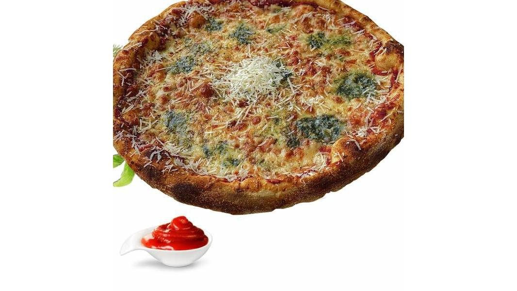 Blat pizza, mozzarella, sos pizza, brânză cu mucegai albastru, cașcaval, brânză gran regale, parmezan - 290g + ketchup 30g