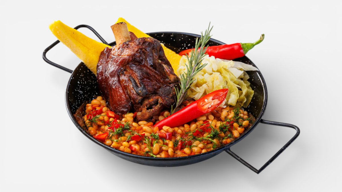 Ciolan de porc, mămăliguță friptă, iahnie de fasole, varză murată, 880g