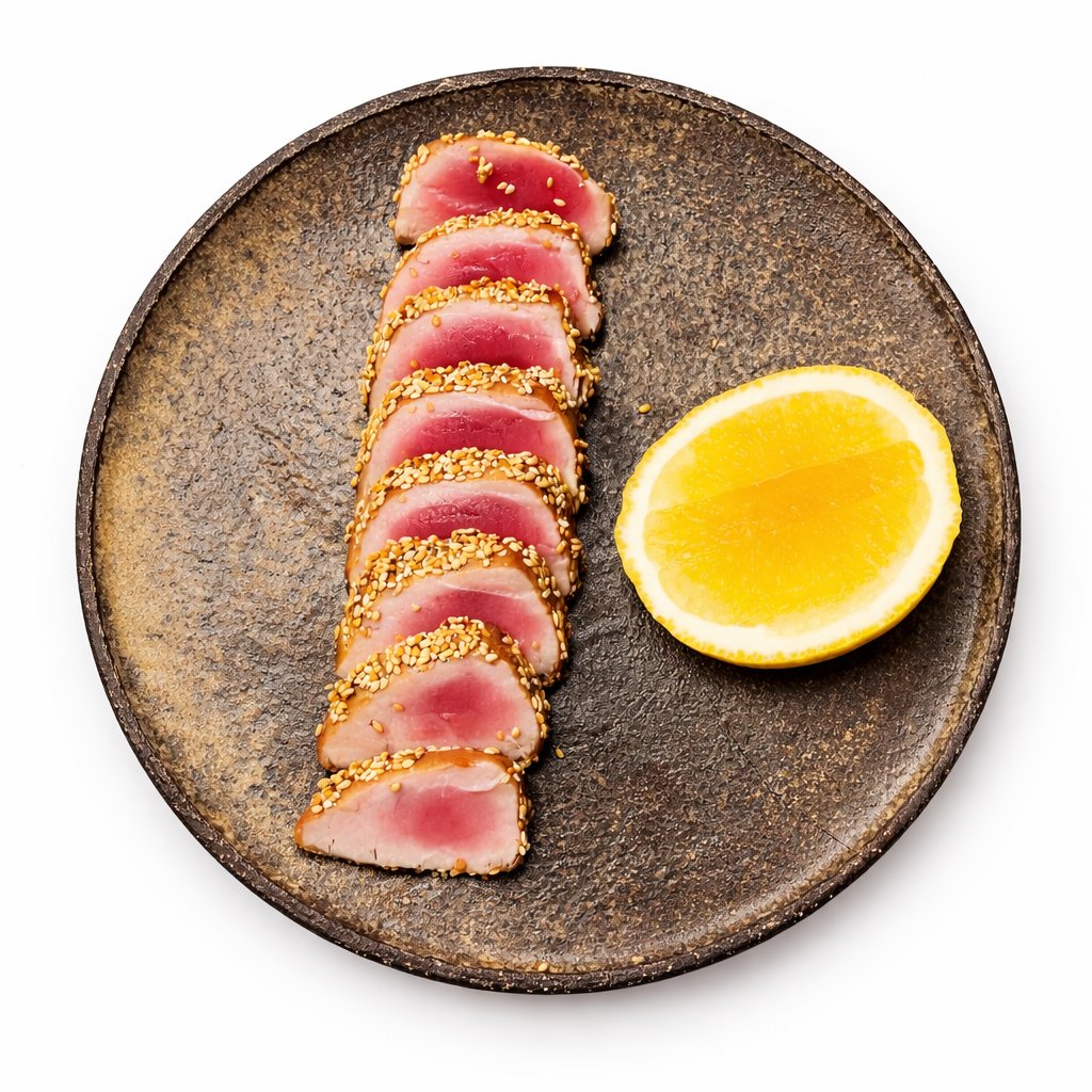 Ton 0,11 Alge marina 0,05 Valori nutriționale per 100 g Calories: 104 kcal Energy: 435 kJ Proteins: 17 g Fats: 1 g Carbohydrates: 3 g Allergens: fish, seaweed.