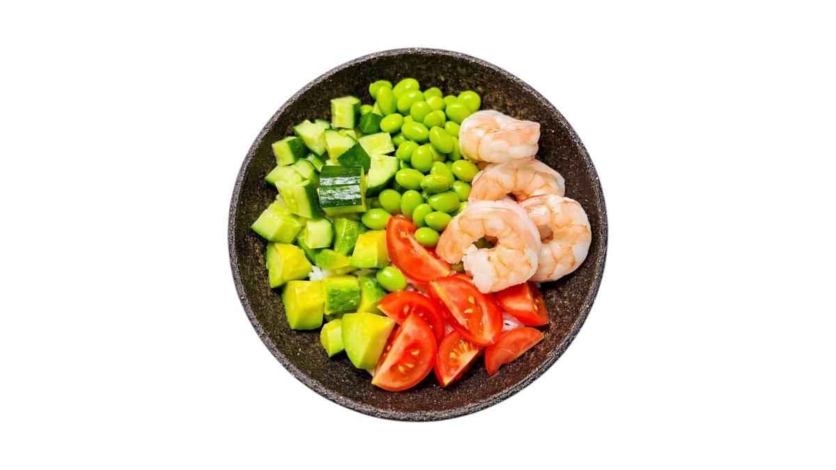 orez pentru sushi 0,2 avocado 0,03 roșii cherry 0,03 castraveți 0,03 edamame 0,03 ridiche 0,015 creveți boiled 0,06 susan 0,005 sos yuzu ponzu 0,03 Valori nutriționale per 100 g Calorii: 160 kcal Energie: 670 kJ Proteine: 7,6 g Grăsimi: 4,9 g Carbohidrați: 23,8 g Alergeni crustacee, soia, gluten, susan