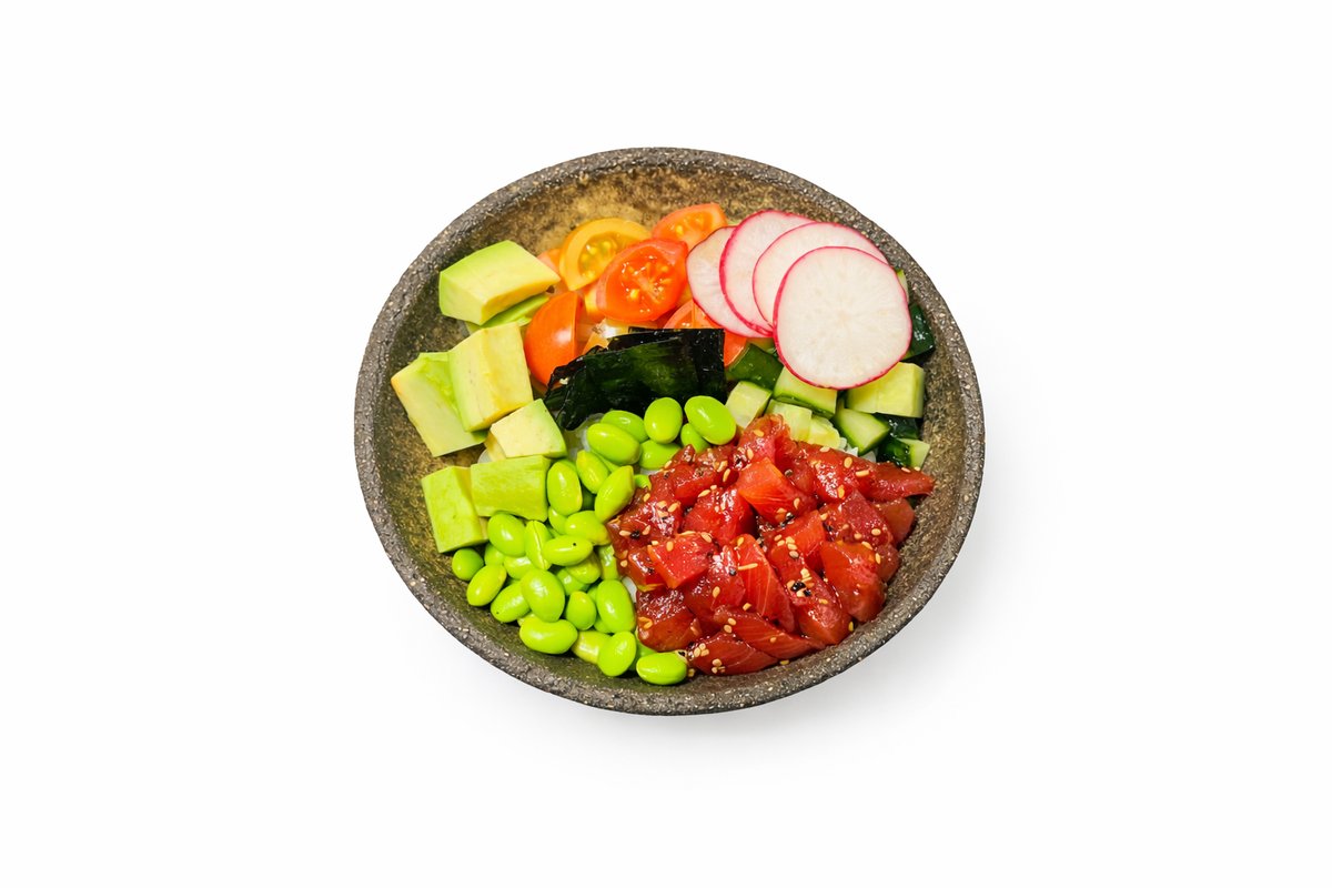 orez pentru sushi 0,2 avocado 0,03 roșii cherry 0,03 castraveți 0,03 edamame 0,03 ridiche 0,015 ton 0,06 susan 0,003 sos sriracha 0,002 ulei de susan 0,001 sos soia 0,003 sos yuzu ponzu 0,03 Valori nutriționale per 100 g Calorii: 167 kcal Energie: 699 kJ Proteine: 8,1 g Grăsimi: 4,3 g Carbohidrați: 23,5 g Alergeni pește, soia, gluten, susan