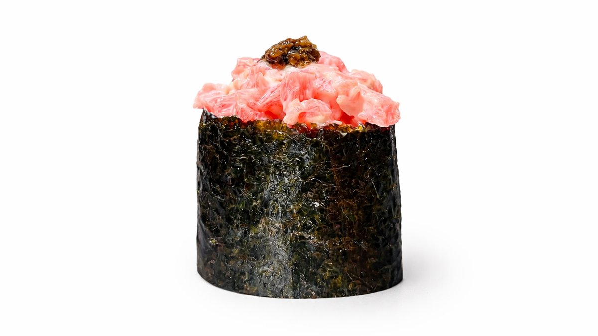 orez pentru sushi 0,02, yakinori 0,25, ton 0,03, maioneză japoneză 0,01, tobiko 0,01 Valori nutriționale per 100 g Calorii: 229 kcal Energie: 958 kJ Proteine: 14,4 g Grăsimi: 11,9 g Carbohidrați: 14,1 g Alergeni pește, ou, muștar, soia