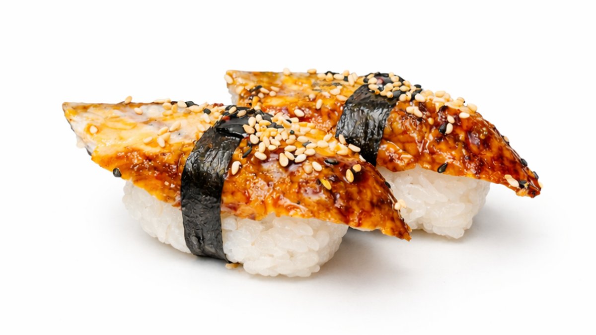 Sushi orez 0,12, Yakinori 0,5 buc, brânză 0,03, Anghilă 0,04, takuan 0,01, Tobiko 0,01, Salmon tataki 0,06, Sos unagi 0,02, goma wakame prăjit 0,01 valori nutriționale per 100 g Calorii: 196 kcal Energie: 820 kJ Proteine: 9 g Grăsimi: 12 g Carbohidrați: 15 g Alergeni: pește, lapte, susan, soia, alge.