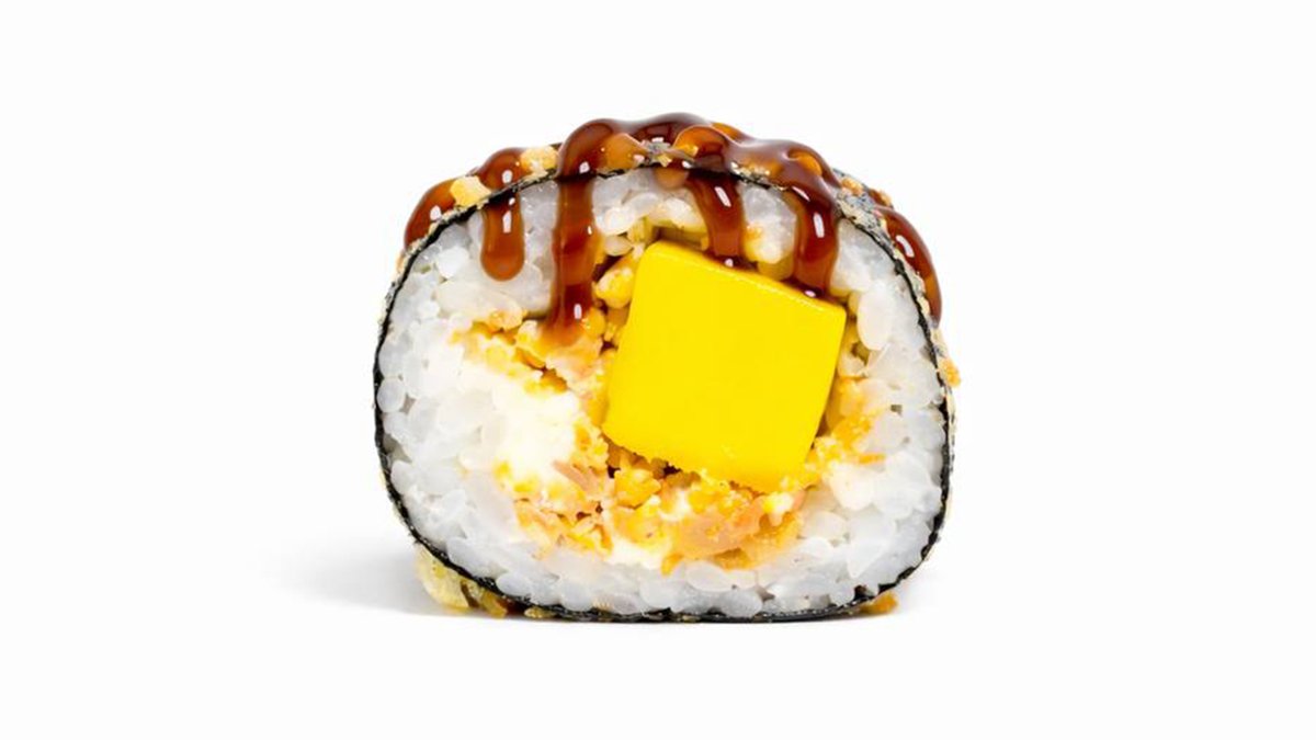 Sushi orez 0,12, nori 0,5 buc, brânză 0,04, ananas 0,02, creveți tempura 0,03, mango 0,04, sos unagi 0,005, tobiko 0,01 valori nutriționale per 100 g Calorii: 190 kcal Energie: 795 kJ Proteine: 6 g Grăsimi: 8 g Carbohidrați: 23 g Alergeni: crustacee, pește, gluten, ouă, lapte, alge.