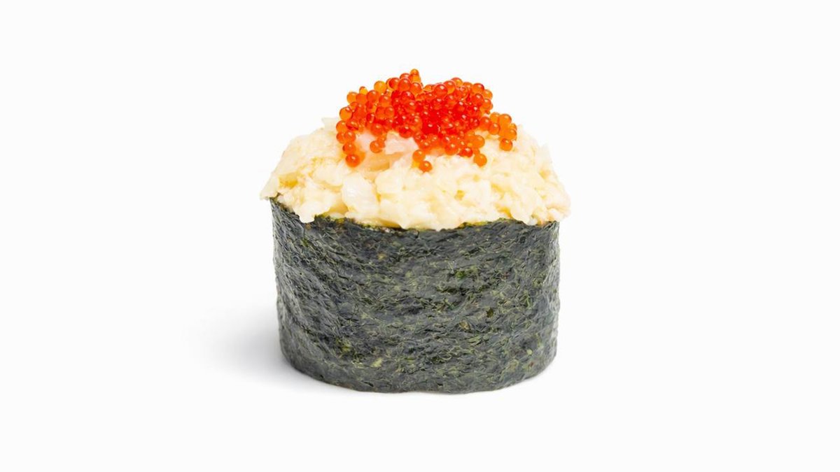 Sushi orez 0,12, Yakinori 0,5 buc, Castraveți 0,02, Avocado 0,04, mix de crab 0,04, praz prăjit 0,001, mix de susan 0,002 valori nutriționale per 100 g Calorii: 148 kcal Energie: 619 kJ Proteine: 5 g Grăsimi: 7 g Carbohidrați: 19 g Alergeni: crustacee, ouă, lapte, susan, alge