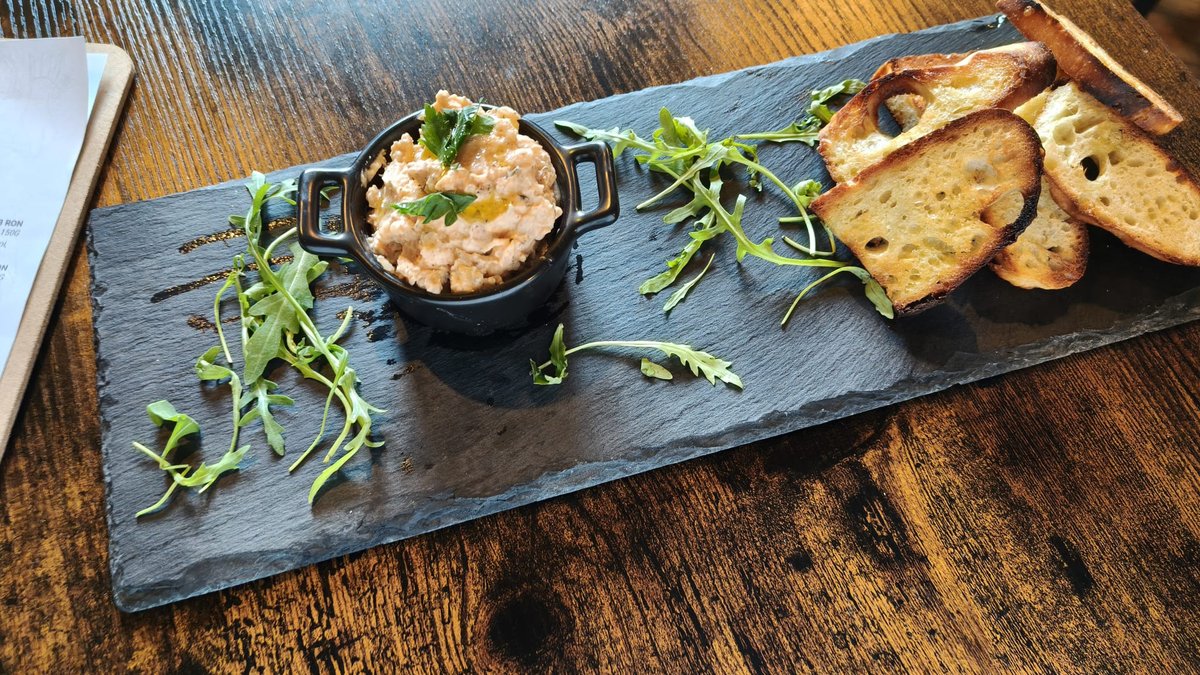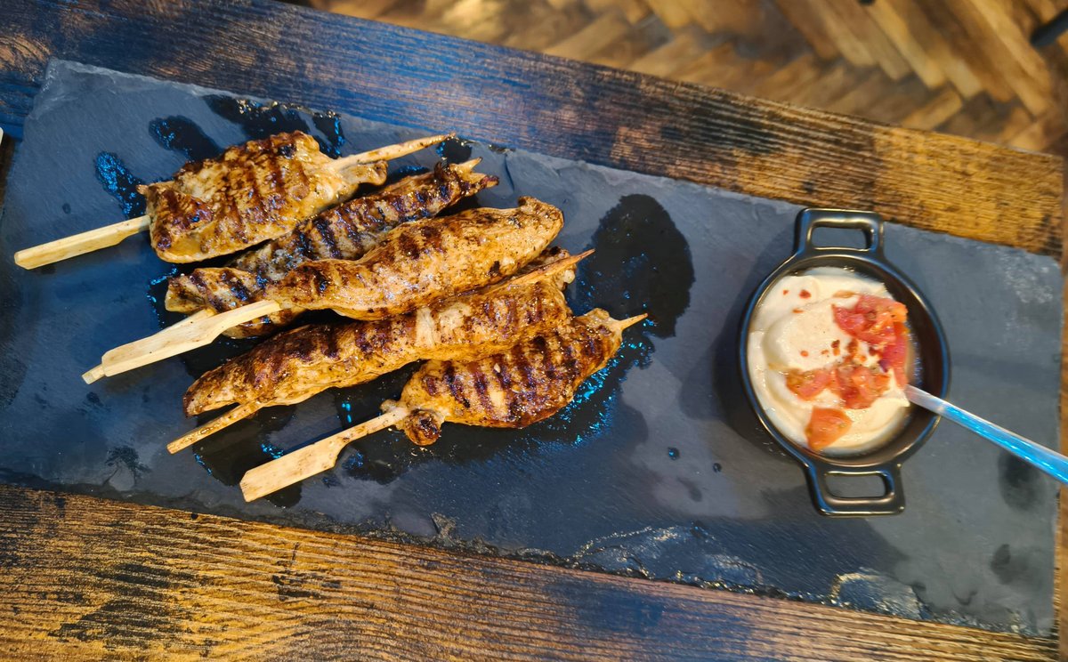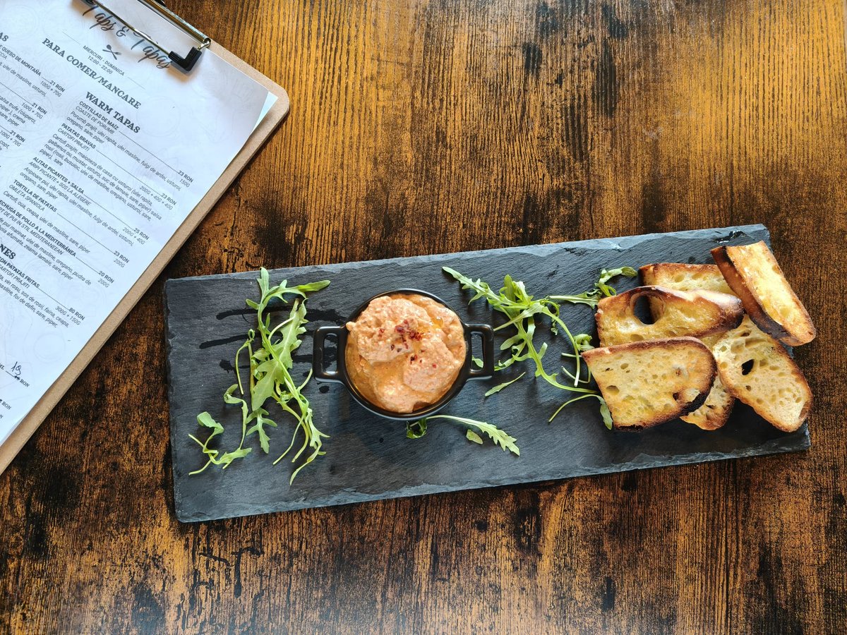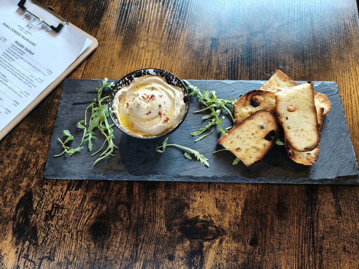 Naut, pasta susan, sos mediteraneean(ardei kapia, branza feta, smantana lichida, ulei de masline, oregano, pudra usturoi, sare, piper), suc de lamaie, usturoi copt, usturoi, ulei de masline, sare, piper, chimion