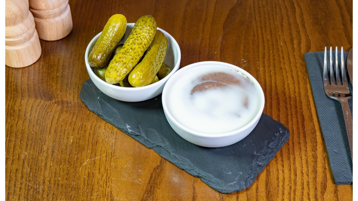 Mușchi vită, ceapă roșie, capere, castraveți murați, maioneză, 220g