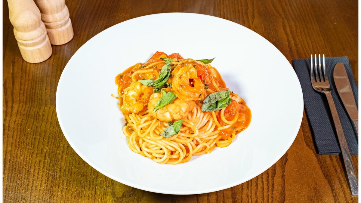 Spaghete, creveți, suc de roșii, 300g