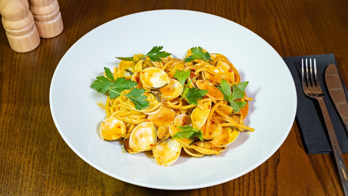 Spaghete, vongole, `nduja, unt, vin alb, usturoi, 300g