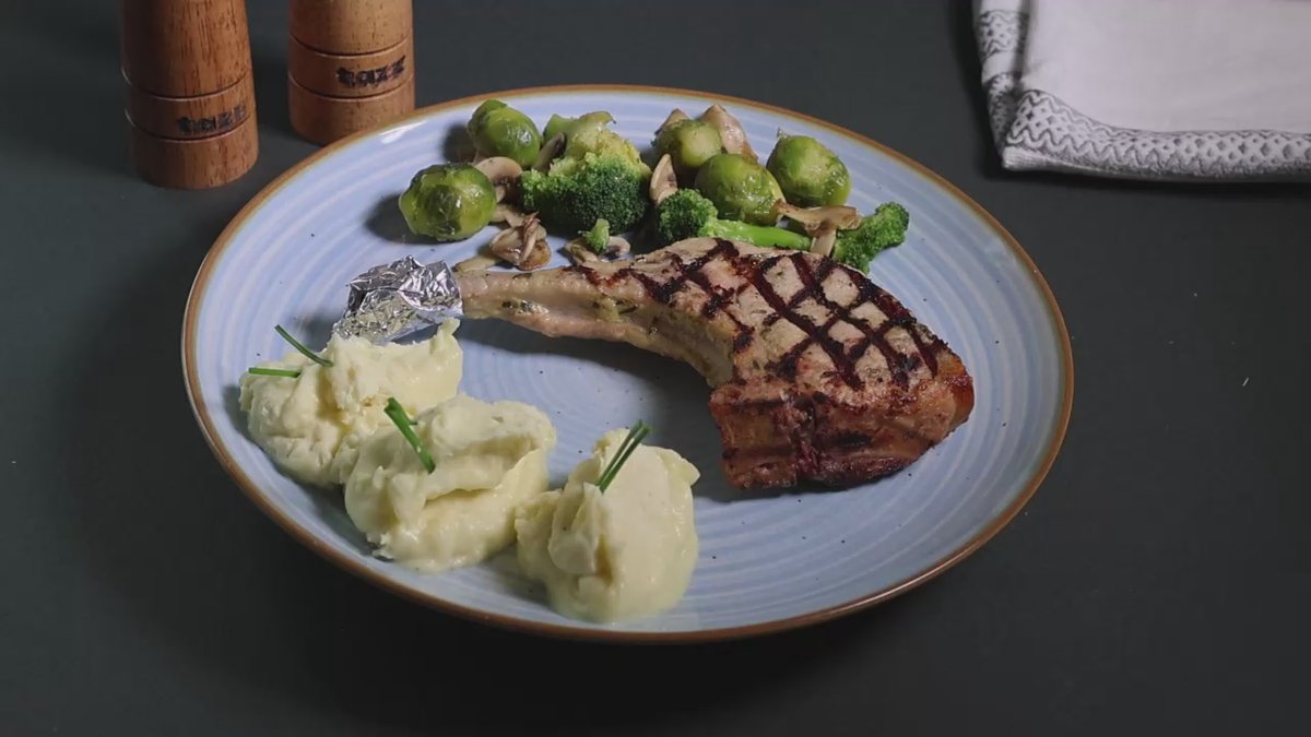 Cotlet de porc cu piure de cartofi cu ceapă verde