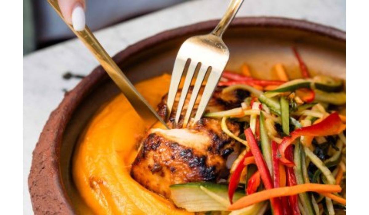 Pește atlantic, cartofi dulci, unt, ulei măsline, mirin, sos Ponzu, sos soya, ulei de susan, lămâie 200 g / 100 g Alergeni: Cereale, Lapte, Soia, Susan Calorii:762.16 Kj (1524.32 Kj) / 182.16 Kcal (364.32 Kcal) Grăsimi:11.85 g / 23.70 g Grăsimi saturate:4.52 g / 9.04 g Carbohidrați:9.99 g / 19.98 g Zaharuri:2.5 g / 5.00 g Proteine:9.42 g / 18.84 g Sare:2.02 g / 4.04 g