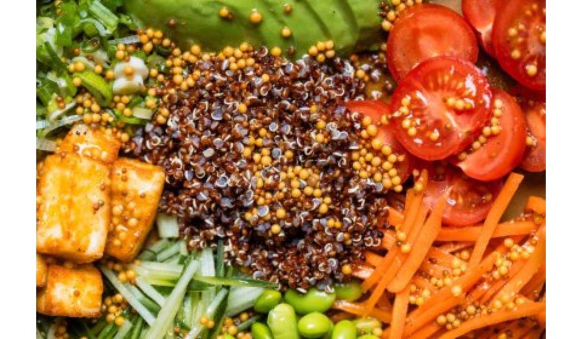 Halloumi, avocado, roșii, morcov, castraveți, edamame, muștar framțuzesc, lămâie, ceapă verde, ulei măsline 220 g / 180 g Alergeni: Lapte, Mustar Calorii:579.25 Kj (1274.35 Kj) / 138.44 Kcal (304.57 Kcal) Grăsimi:8.61 g / 18.94 g Grăsimi saturate:3 g / 6.60 g Carbohidrați:9.36 g / 20.59 g Zaharuri:3.57 g / 7.85 g Proteine:6.71 g / 14.75 g Sare:0.85 g / 1.87 g