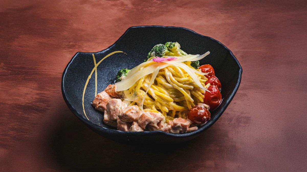 Pasta Spaghetti, somon fresh, broccoli, capere, rosii cherry, branza Grana Padano, smantana dulce, sos alb - 350g