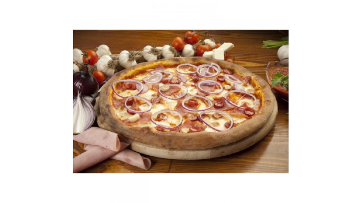 Sos rosii, mozzarella, sunca, ciuperci, salam picant, masline.
