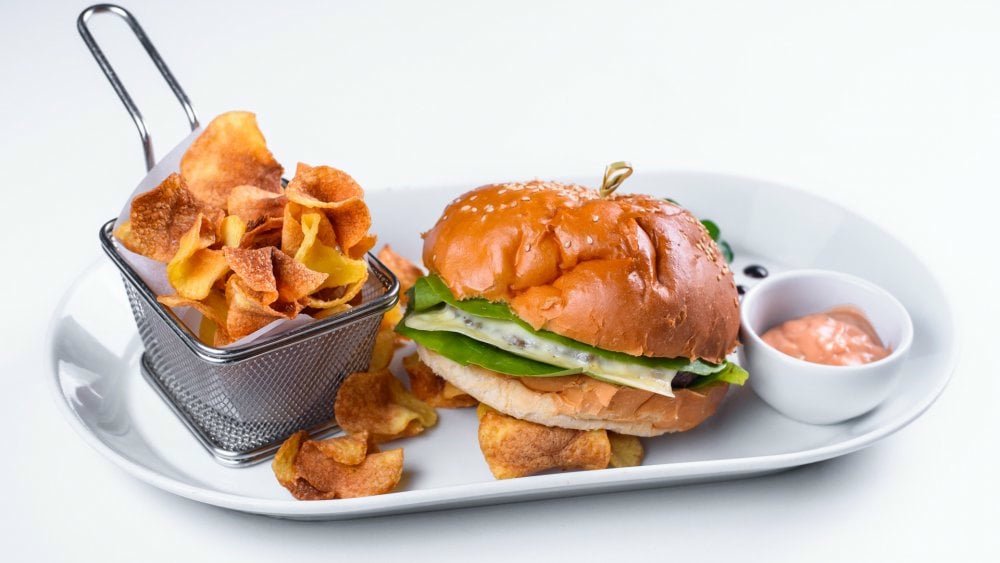 Carne de vită, chiflă, salată, sos burger, chips cartofi 350 g