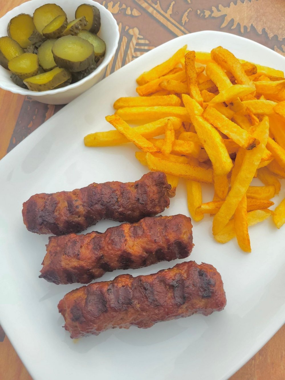 8 mititei x 100 gr , 2 portii carnati x 200 gr , 2 ceafa de porc x 200 , 2 piept de porc x 200 gr, 2 pastrama de pui x 200 gr , 3 portii cartofi prajiti x 200 gr , telemea 50 gr * se poate si fara telemea.