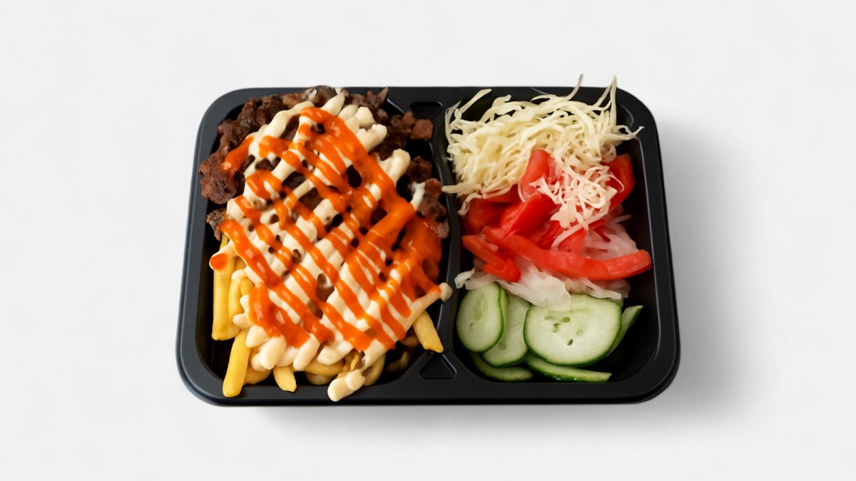 Shaorma pui/vita/mix* 100gr, pita* 120gr, cartofi prajiti* 50gr, sos 80gr, salata (* produse congelate) - 120gr