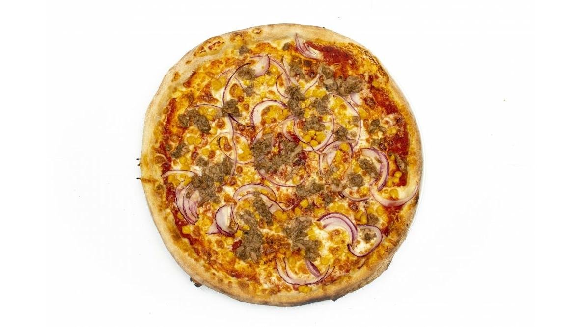 Sos de roșii, mozzarella, ton, ceapă roșie, porumb 600 g