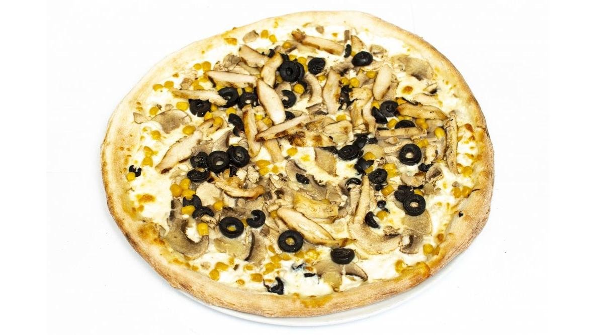 Smântână, mozzarella, piept de pui, ciuperci, măsline, porumb 575 g