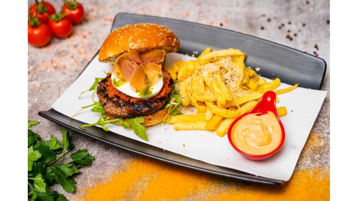 muschi de vita*100g, mix salata 80g, rucola 30g, rosii uscate 20g, scalii de parmezan 20g(ou, lapte), ulei de masline virgin, oregano 280g