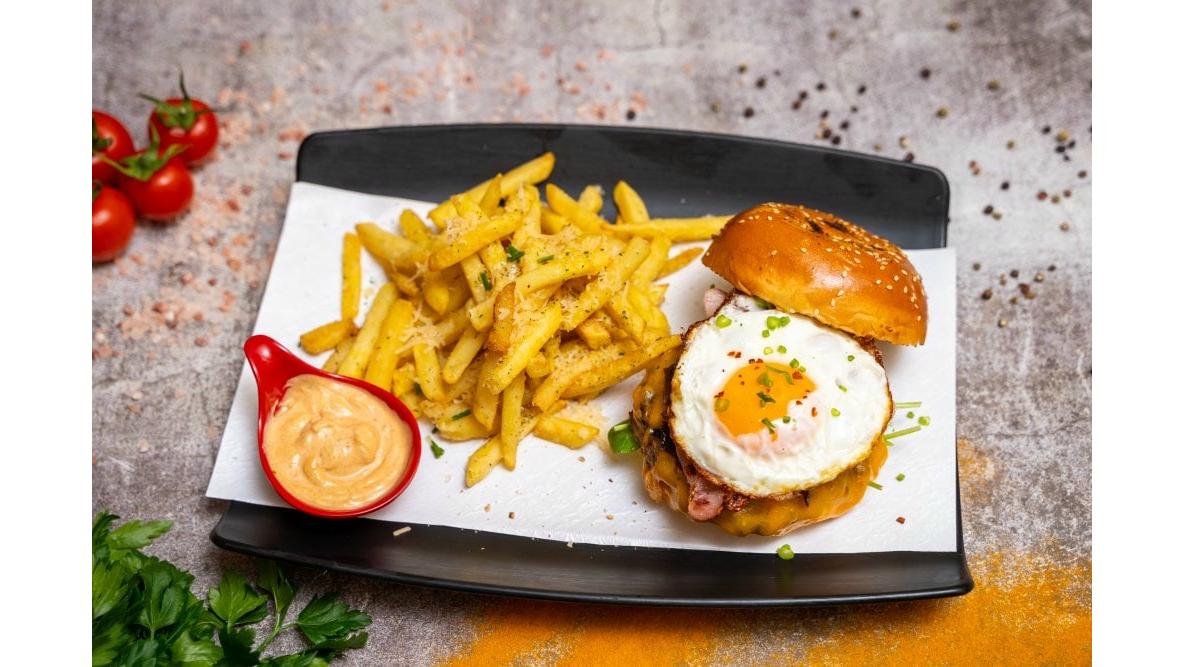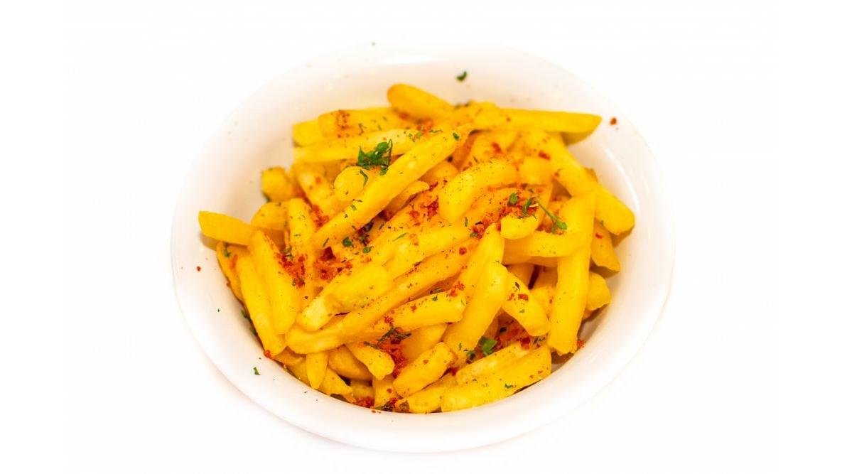 piept de pui*220g, cartofi prajiti 150g, ulei floarea soarelui, sare, piper 200g / 150g