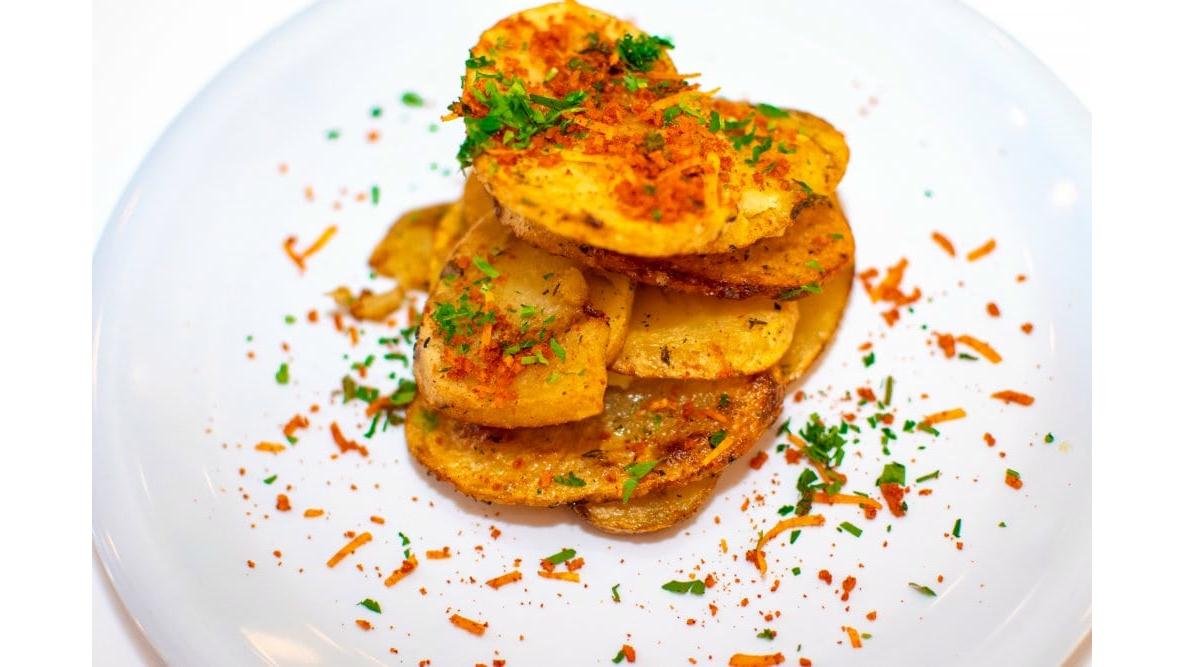 cartofi noi 200g, ulei de floarea soarelui, usturoi, piper, oregano 200g