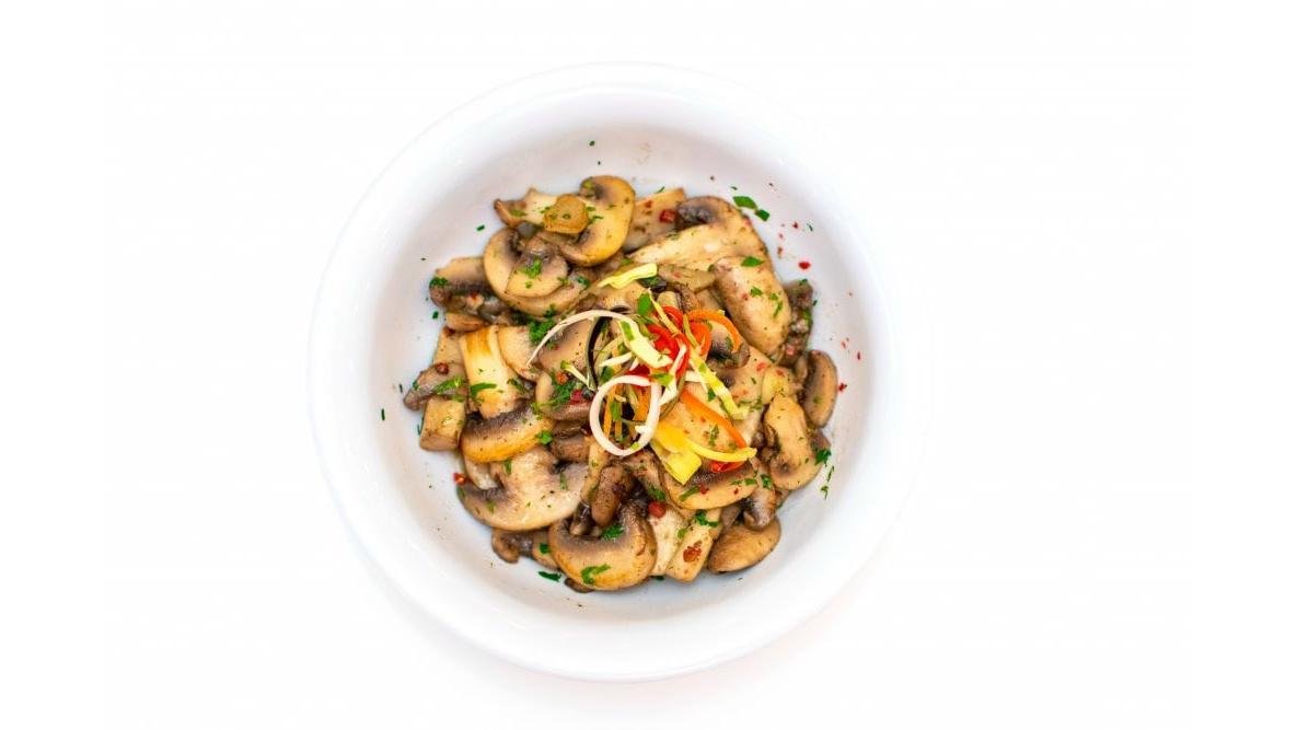 rosii 100g, vinete 50g, dovlecei 50g, ardei capia 50g, ciuperci champignon 50g, ceapa galbena 50g, ardei iute 20g, sare, piper