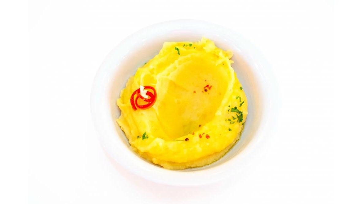 ciolan de porc 650g, piure cu trufe 150g(cartofi 130g, lapte, pasta trufe 20g), rucola, sare, piper 500 g / 150 g
