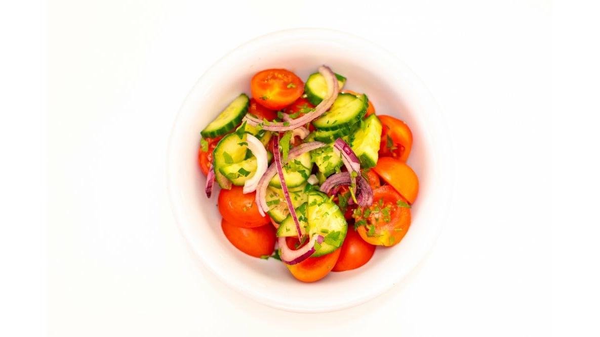 Salată de vară (roșii, castraveți, ceapă roșie)