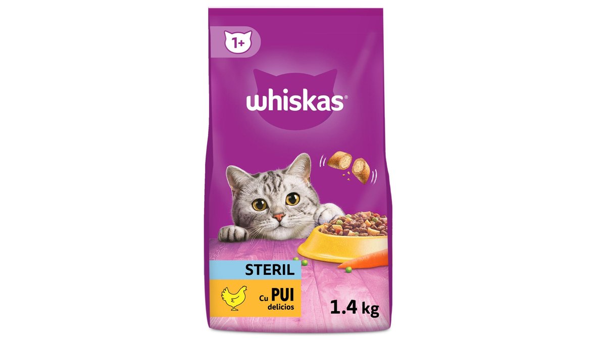 Whiskas Sterile hrana uscata cu pui pentru pisici adulte 1.4kg