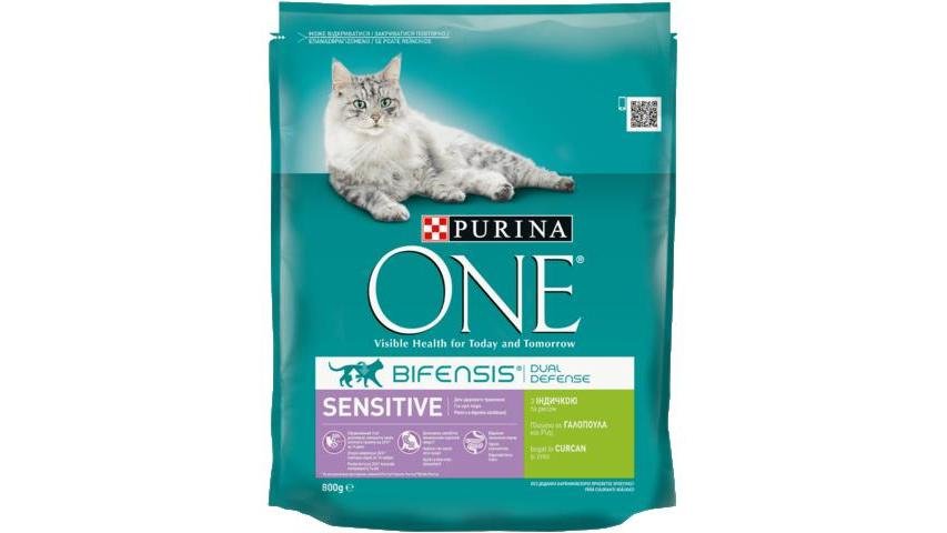 Purina ONE Adult Sensitive cu curcan si orez, hrana uscata pentru pisici, 800 g