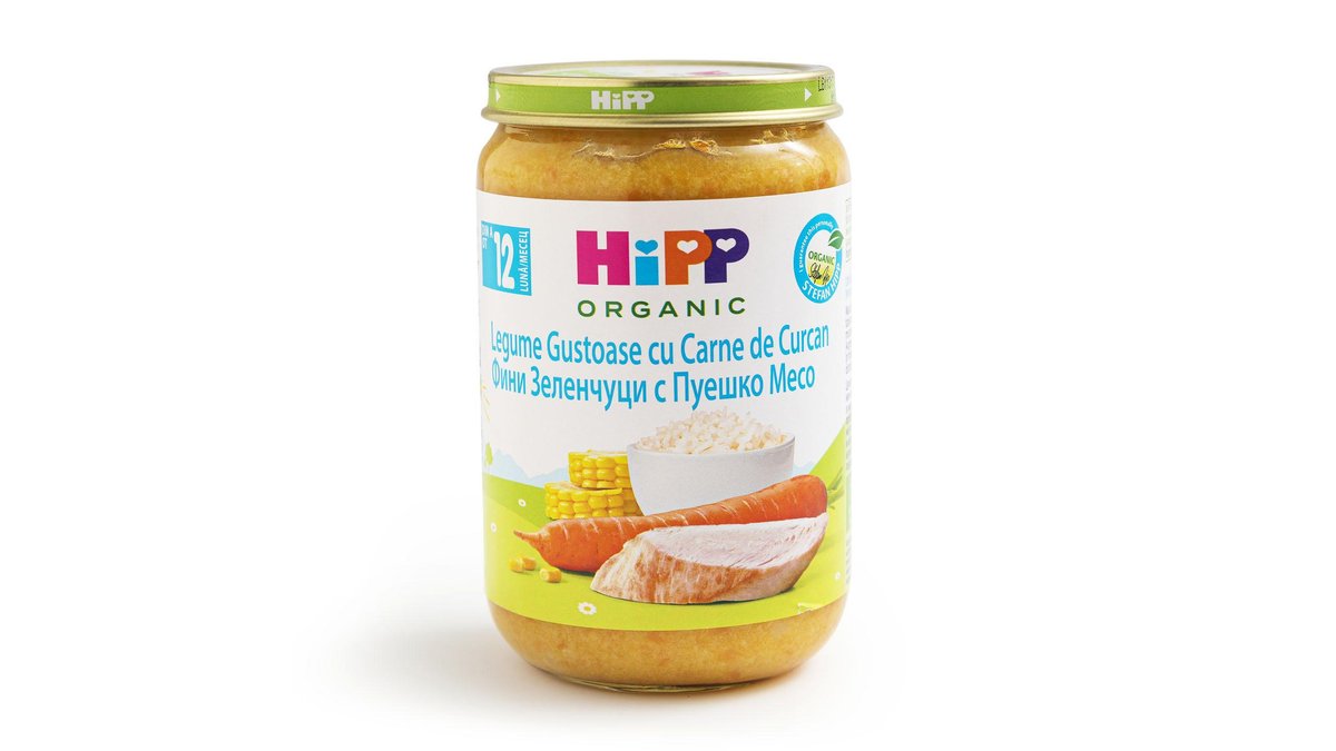 Piure cu legume gustoase, orez si curcan 12 luni+ Hipp 220g