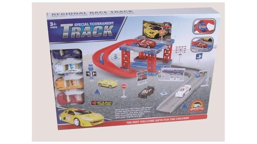 Parcare Cu 4 Masinute De Curse, 27X37X6 Cm, Plastic, Multicolor