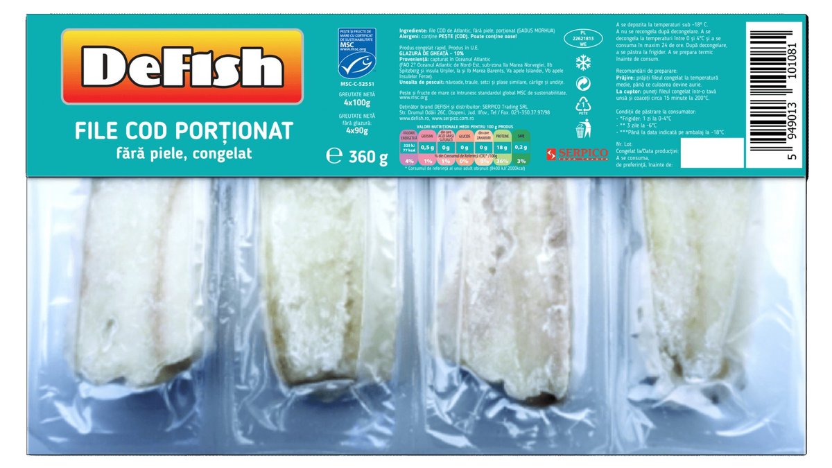 File de cod Atlantic congelat, fara piele, fara oase 600g Edenia