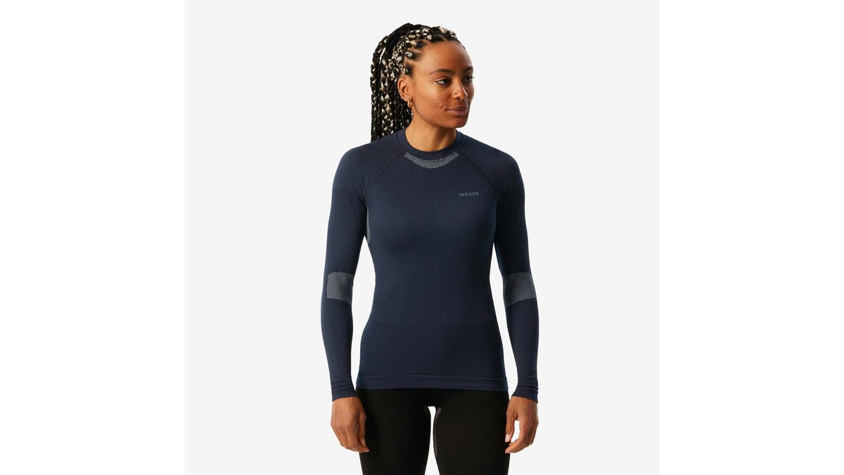 Bluză termică confortabilă schi BL500 soft seamless Bleumarin și Albastru Damă
