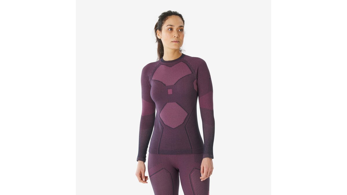 Bluză termică schi confortabilă BL500 soft seamless Roz și negru Damă