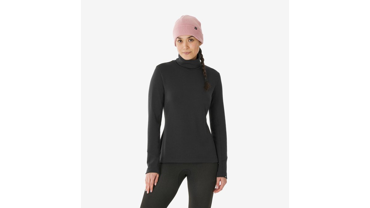 Bluză termică guler rulat lână merinos BL TO 500 Woolneck Negru Damă