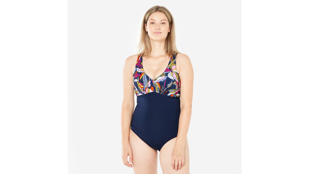 Costum înot KAMYLA 500 Albastru-Alb Damă