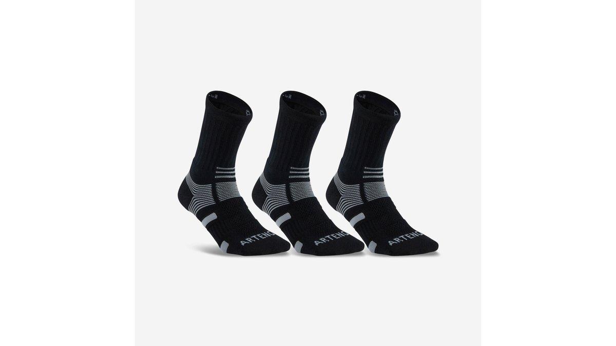 Set 3 perechi Şosete lungi tenis RS 500 Negru