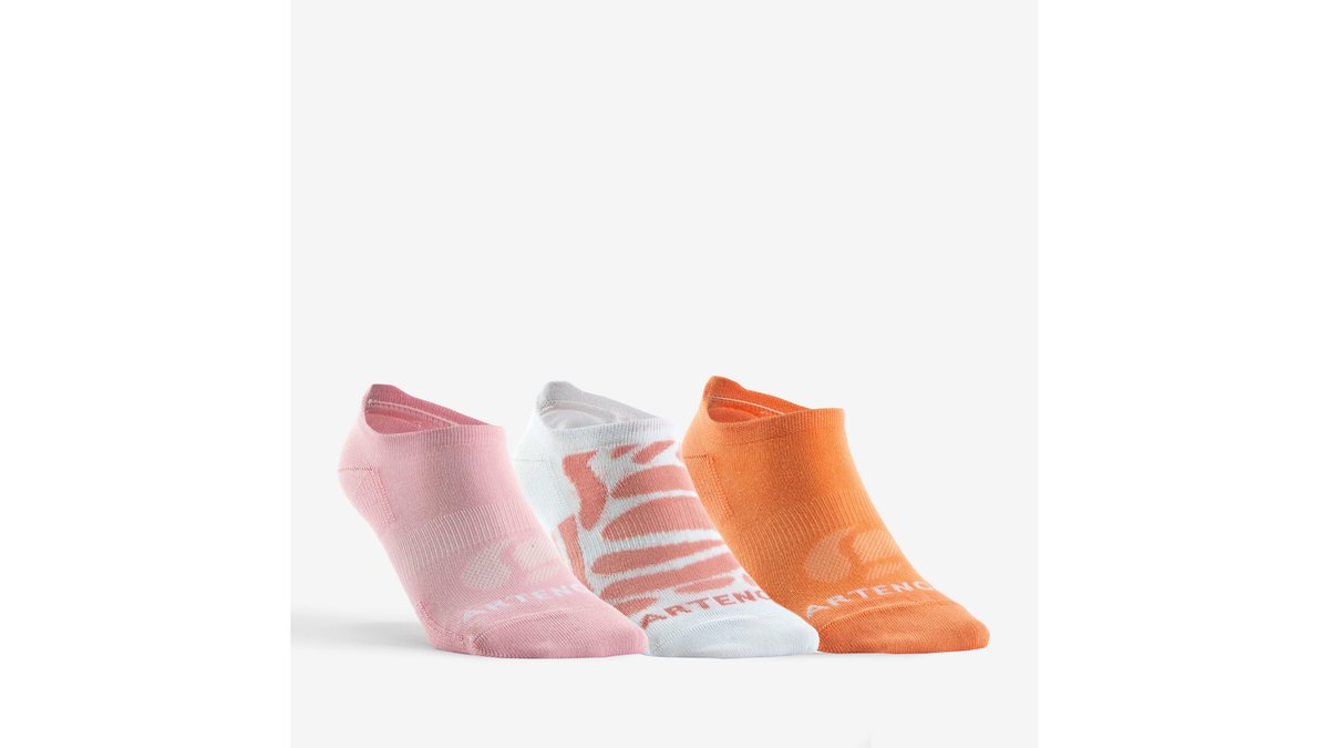Șosete de sport scurte Artengo RS 160 motive portocaliu-roz set de 3 perechi