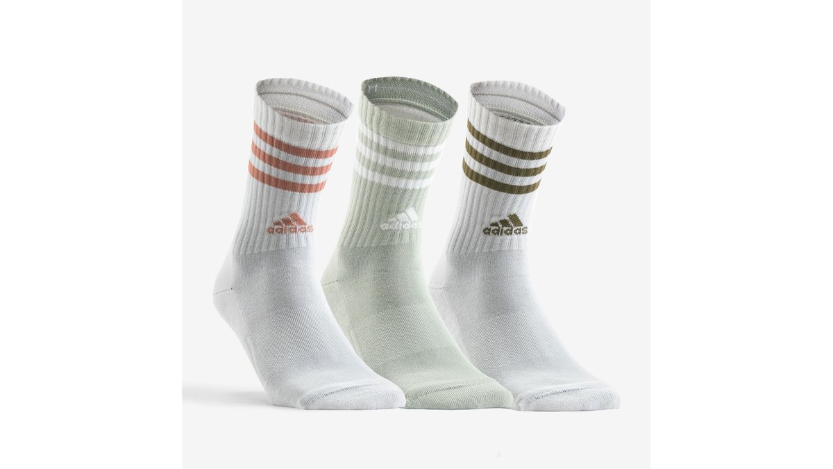 Set de 3 perechi șosete lungi sport ADIDAS alb gri, cu dungi
