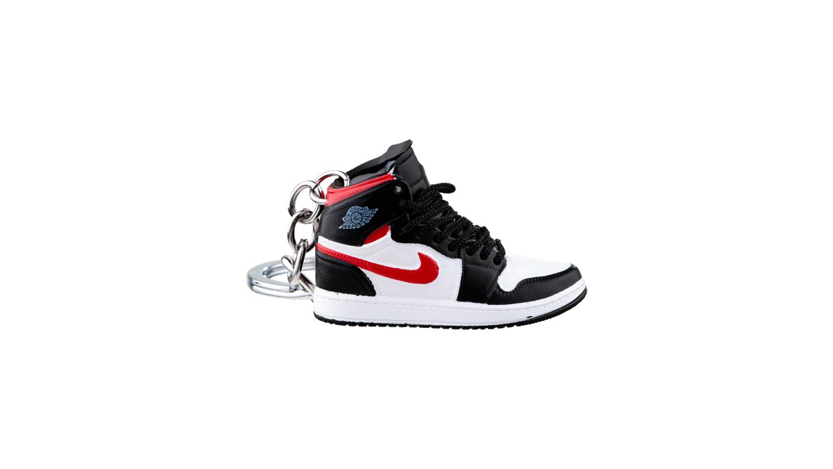 Breloc pentru chei, Nike Air Jordan, figurina 3D, 50x30 mm, fabricat din cauciuc si pvc, realizat si pictat manual, Negru-Alb