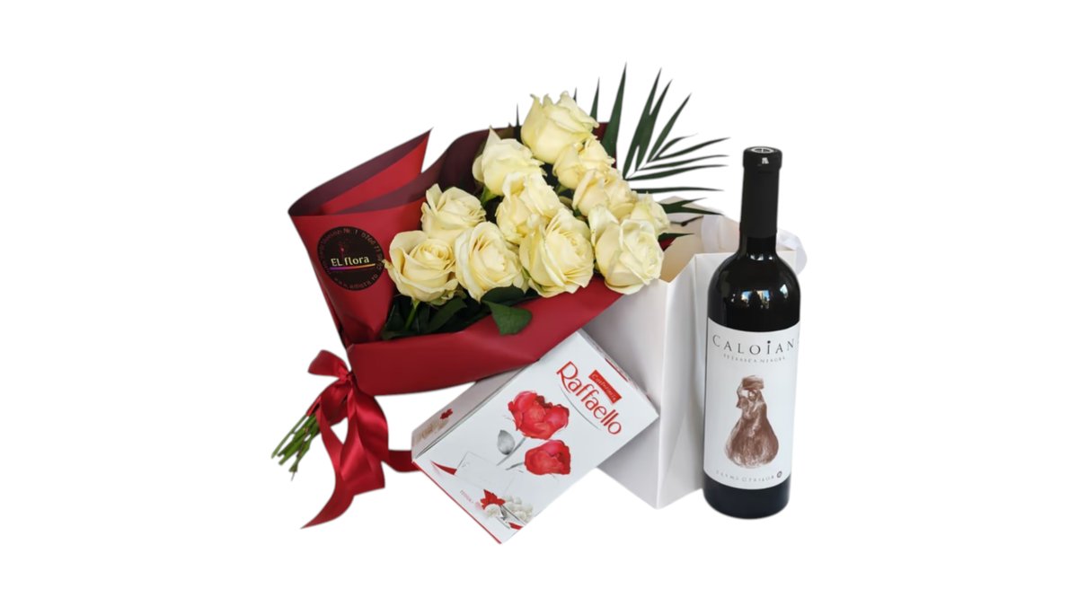 buchet 13 lalele mixt cu stica de vin CADOU
