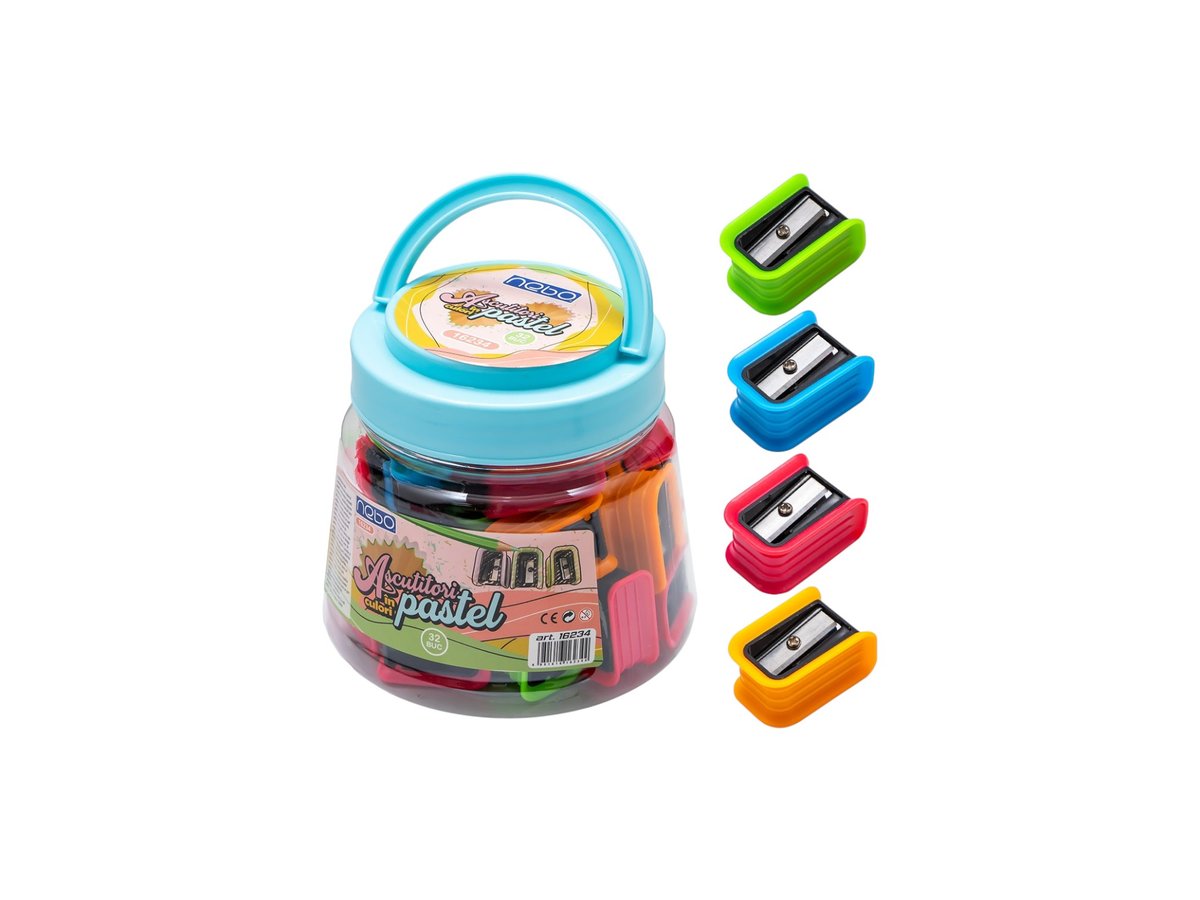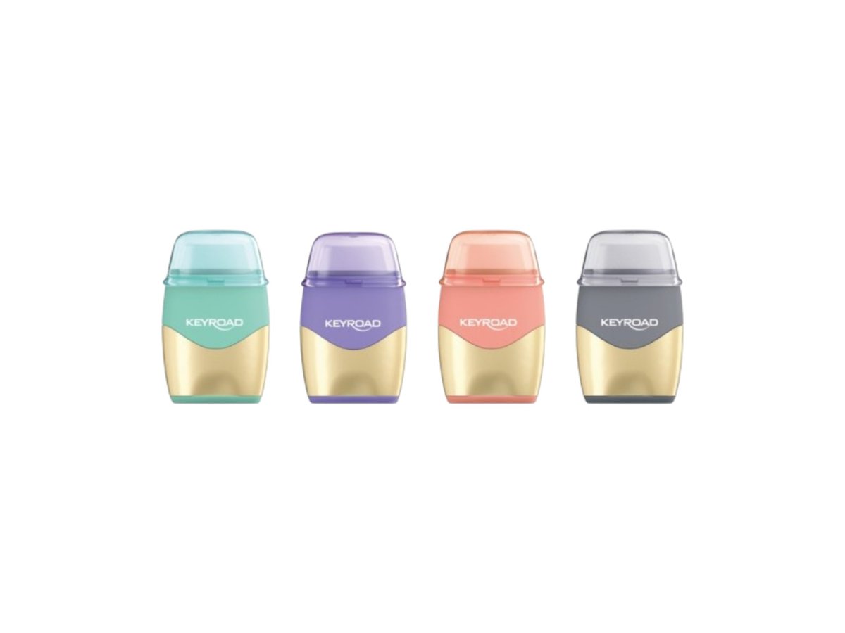 Ascutitoare plastic dubla+radiera keyroad kr9729 35. Culori metalice diverse (bx16)x96x384