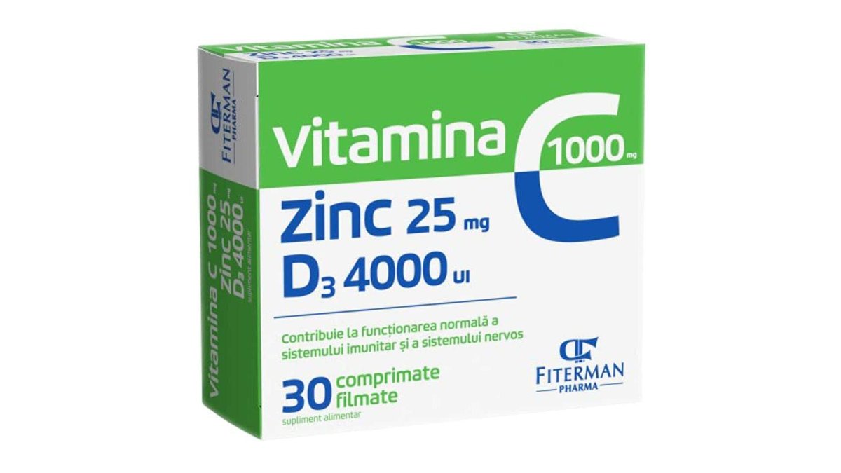 Fiterman Vitamina C Vitamina C 1000 mg + Zinc 25 mg + D3 4000 UI, comprimate filmate