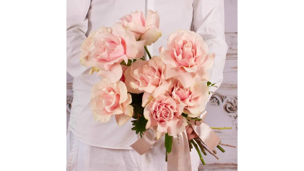 Buchet cu 7 trandafiri roz pal