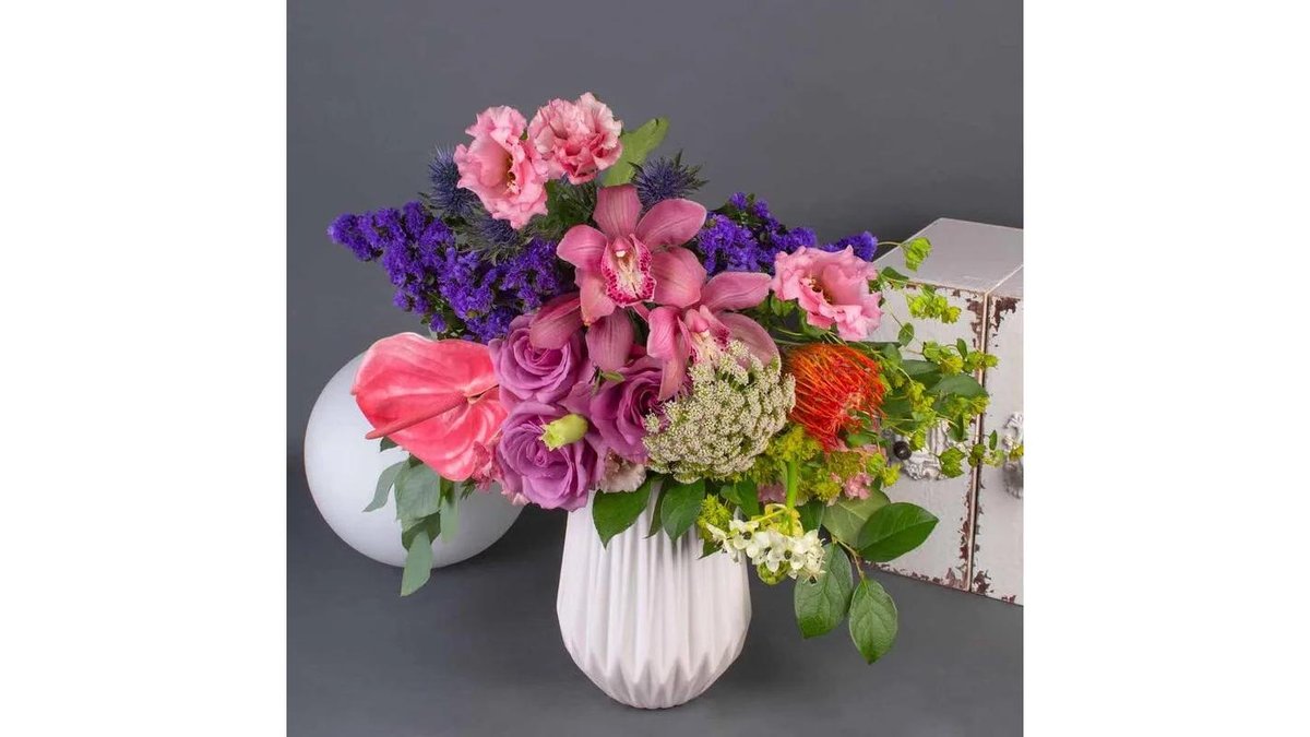 Buchet cu orhidee lisianthus și protea