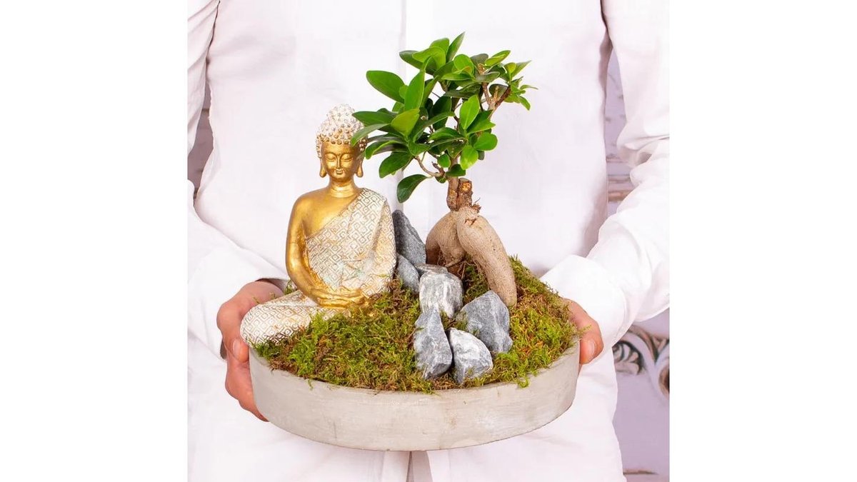 Aranjament „Buddha și micul paradis al plantelor”